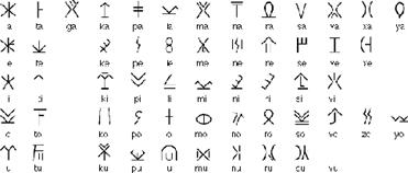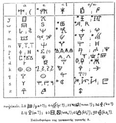 γραμμούλες) αντί για γράμματα για τα φωνήεντα, τα οποία έβαζαν πάνω ή κάτω