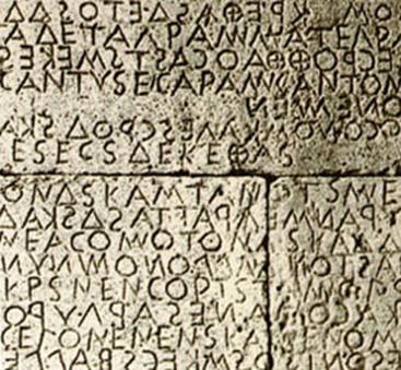 χρήματα), AΡEΜON (αρέσον), CASNEΘAS (παίνεθαι), AΡΛΥΡΙΟΝ (αργύριον)….
